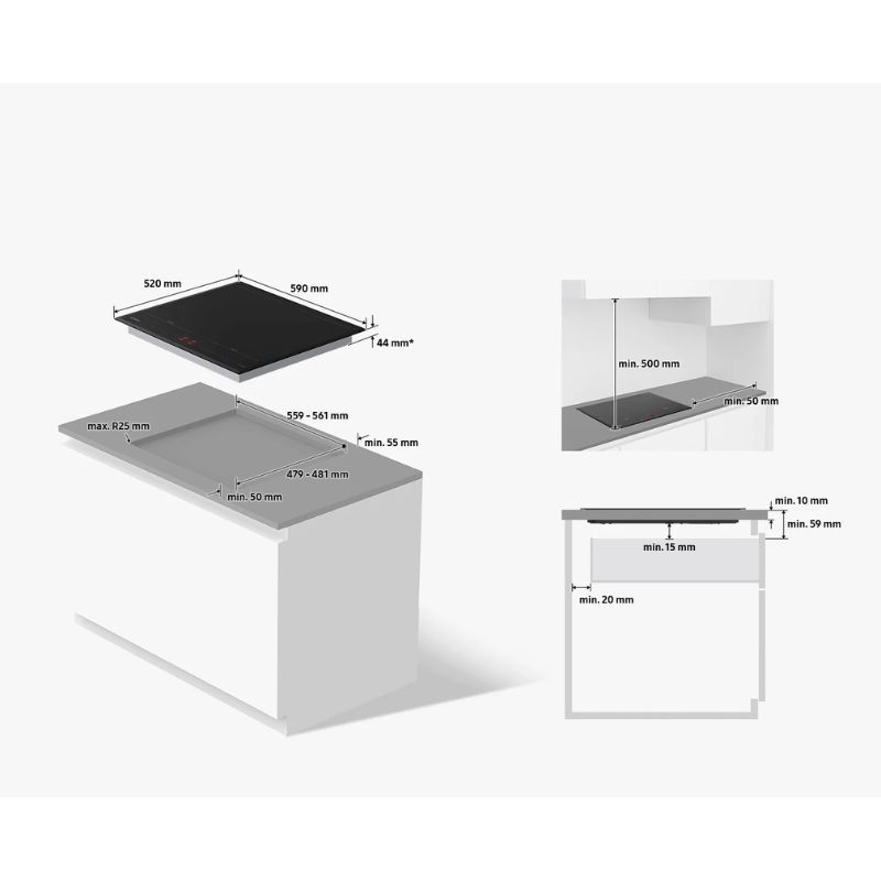 - Lắp đặt bếp âm nên tuân thủ theo đúng chỉ dẫn của hãng.