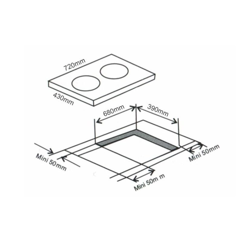 – Kích thước khoét lỗ: 680 x 390mm