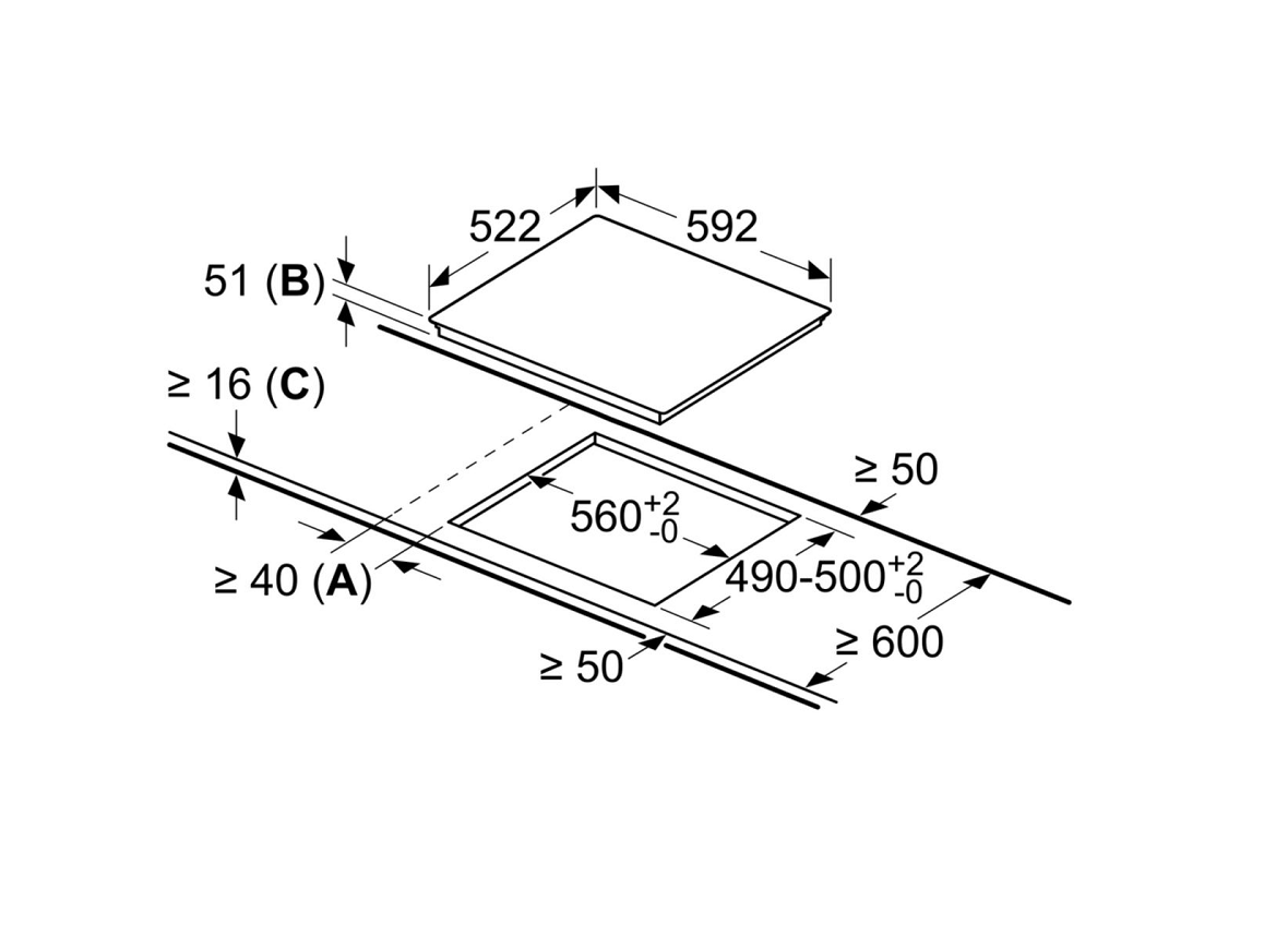 – Kích thước mặt bếp 51 x 592 x 522 mm