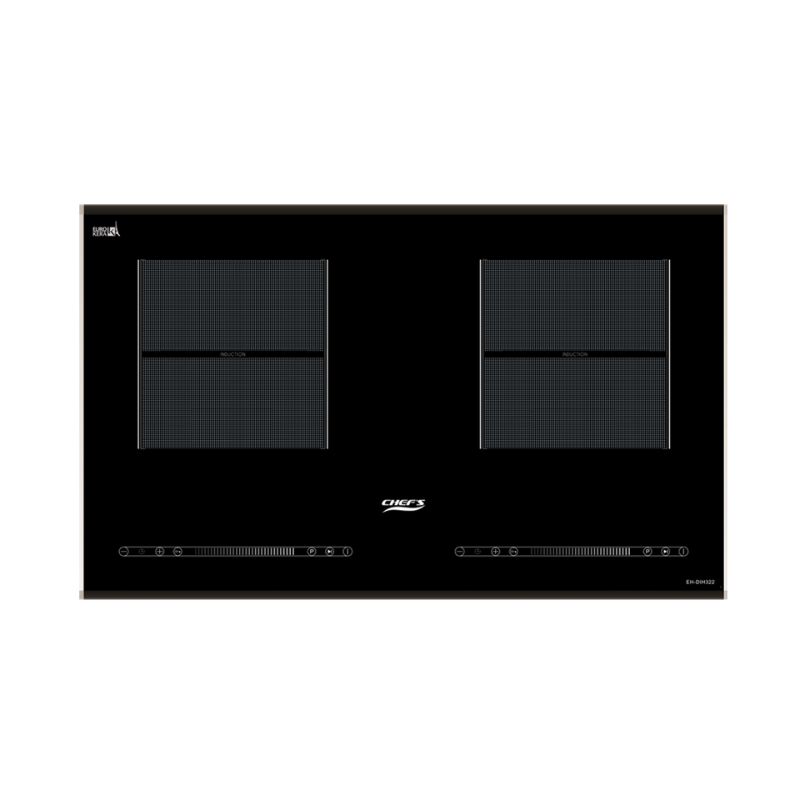- Giao diện bề mặt và bảng điều khiển của bếp: Bếp từ đôi EH-DIH322 thiết kế 2 vùng nấu với 2 bảng điều khiển riêng biệt. Vùng nấu bếp được thể hiện bằng vùng hình vuông với các chấm bi tròn nhỏ màu xám, giúp hạn chế tối đa các vết xước có thể nhìn thấy trên bề mặt kính. Bảng điều khiển riêng biệt cho 2 vùng nấu. Mỗi bảng điều khiển có đầy đủ các phím chức năng, biểu thị bằng các kí hiệu đơn giản và dễ sử dụng.