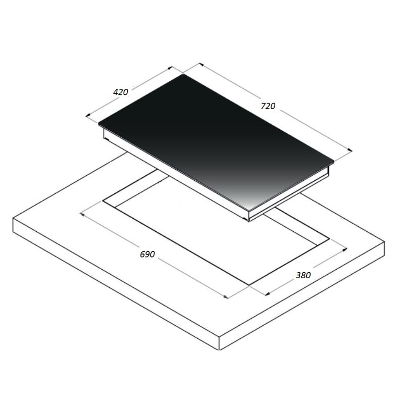 – Kích thước khoét đá: 710mm x 410mm