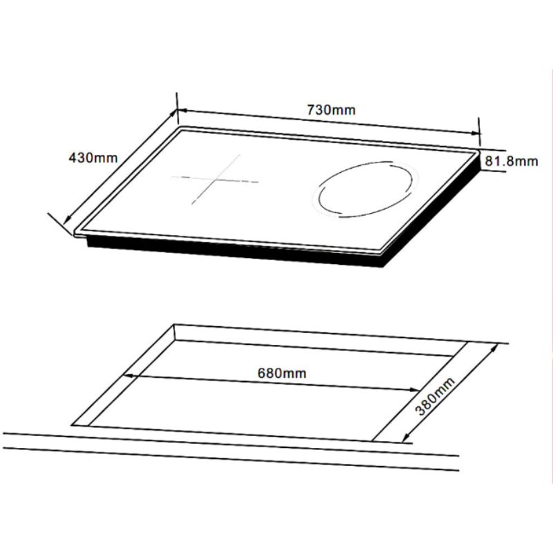 Hình ảnh kích thước bếp từ kết hợp hồng ngoại Hafele HC-H7321B 536.61.856