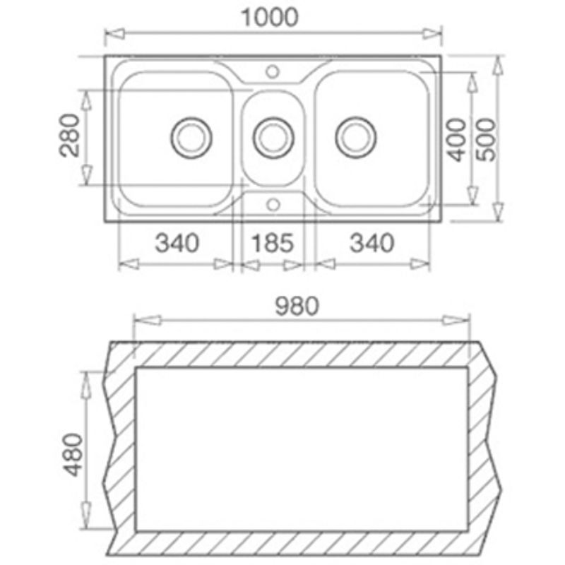 – Kích thước hộc rửa 2 bên (Ø): 340 x 400 x 196 mm