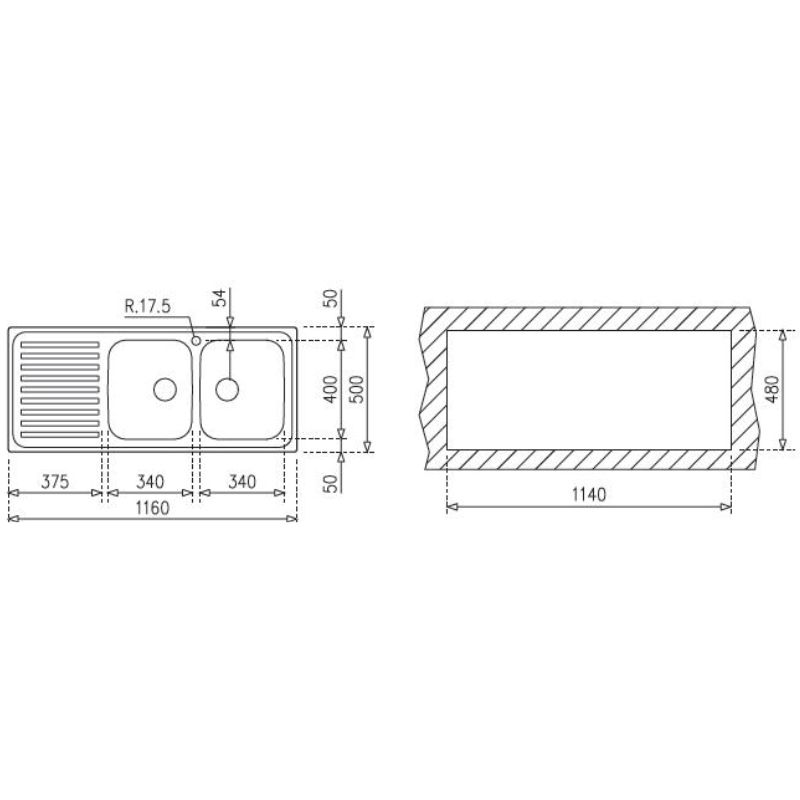 – Kích thước hộc rửa (Ø): 340 x 400 x 193 mm
