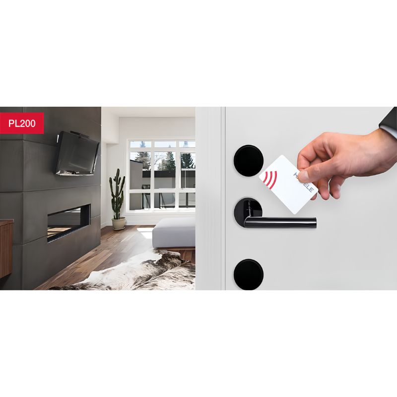 Khóa khách sạn Hafele tay E màu inox DINR PL200 912.20.056 là dòng khóa điện tử hiện đại, phù hợp cho khách sạn, căn hộ và hệ thống lưu trú chuyên nghiệp.