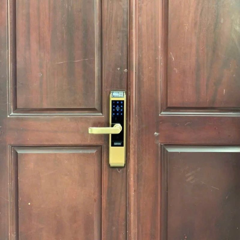 Khóa cửa thông minh vân tay Inox 304 màu vàng nổi bật với thiết kế sang trọng, chắc chắn, phù hợp cho biệt thự, nhà phố và căn hộ cao cấp. Với chất liệu inox bền bỉ cùng công nghệ mở khóa hiện đại, sản phẩm mang đến sự an toàn, tiện lợi và độ bền vượt trội theo thời gian.