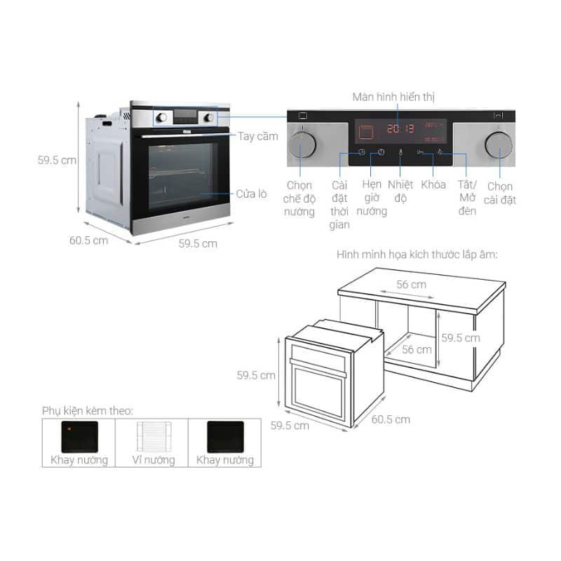 – Phụ kiện đi kèm : 01 vỉ nướng, 02 khay nướng