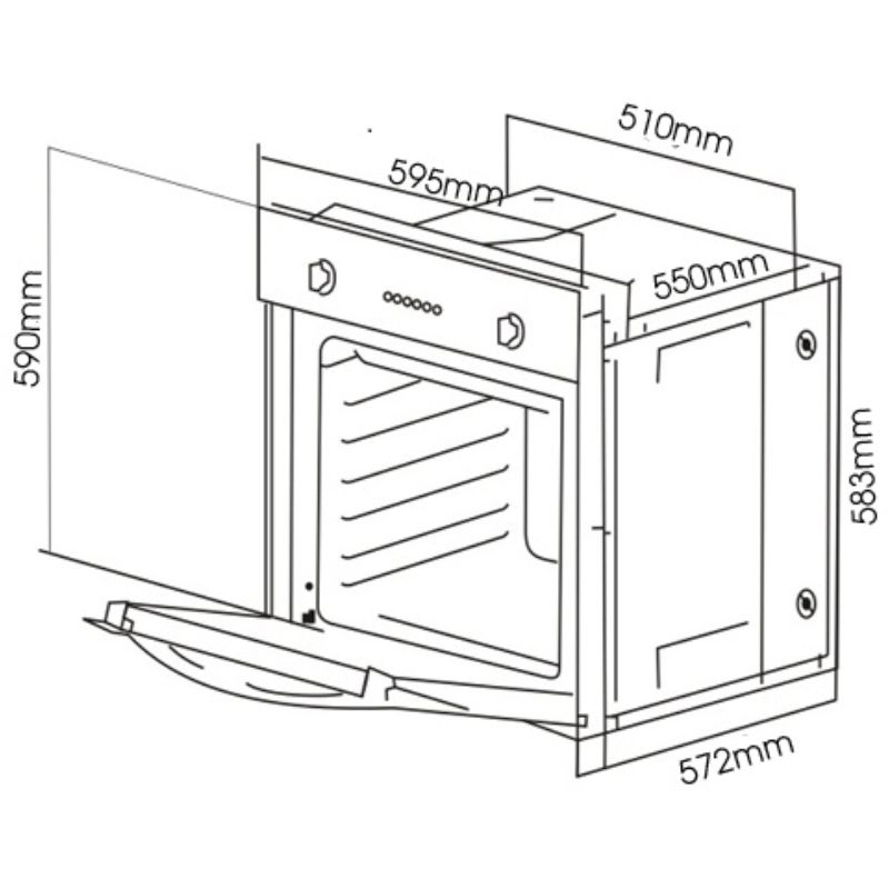 – Kích thước: R595 x C590 x S572 mm
