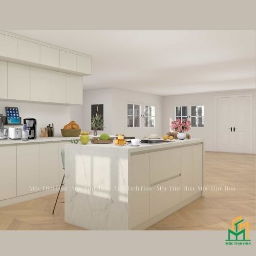 Mẫu tủ bếp nhựa cánh Laminate TBNL08 – Tủ bếp chữ L, hiện đại