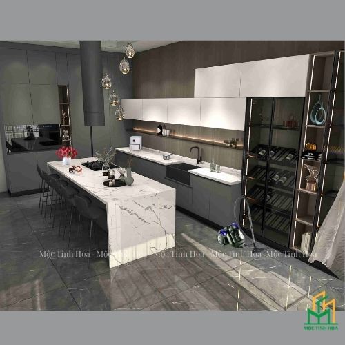 Mẫu tủ bếp nhựa cánh Melamine TBNM05 – Tủ bếp chữ L, hiện đại