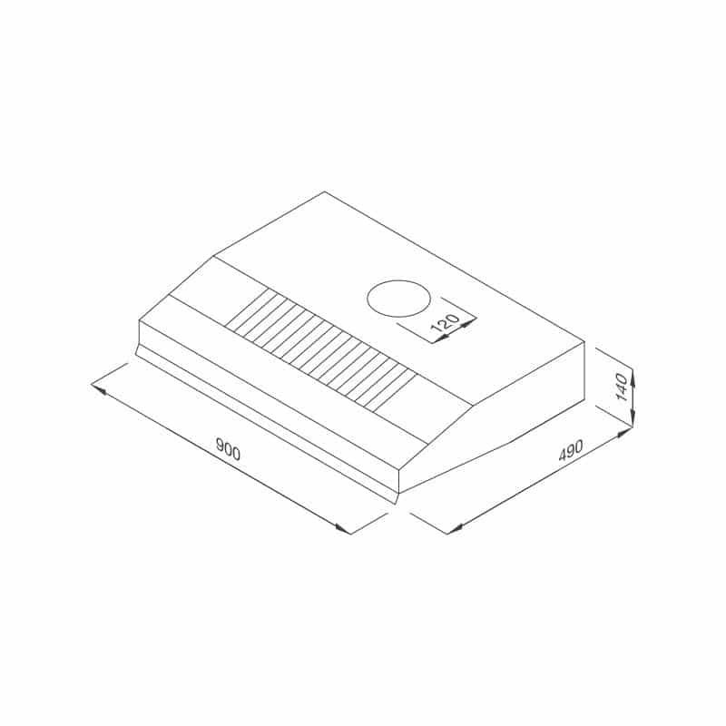 – Kích thước: W900 x D490 x H140mm
