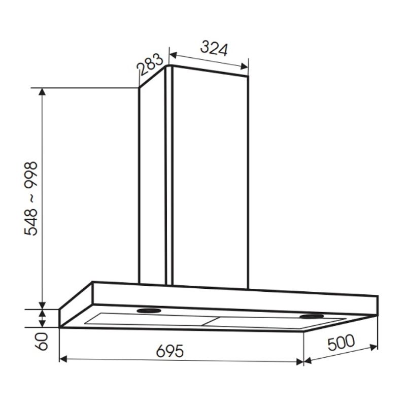 - Thiết kế lắp gắn tường, áp dụng với khoang tủ rộng 700mm.