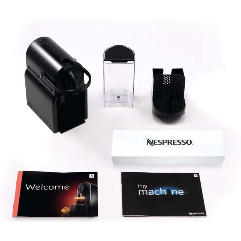 - Phụ kiện đi kèm đa dạng: Phụ kiện đi kèm của Máy Pha Cà Phê Viên Nén Delonghi Nespresso Inissia EN 80.B đa dạng: Sách hướng dẫn sử dụng, sách công thức coffee, hộp 6 viên nén coffee với hương vị khác nhau, khay kê cốc thấp. Ngoài ra còn có bình đựng nước sau máy, khay đựng bã viên nén.
