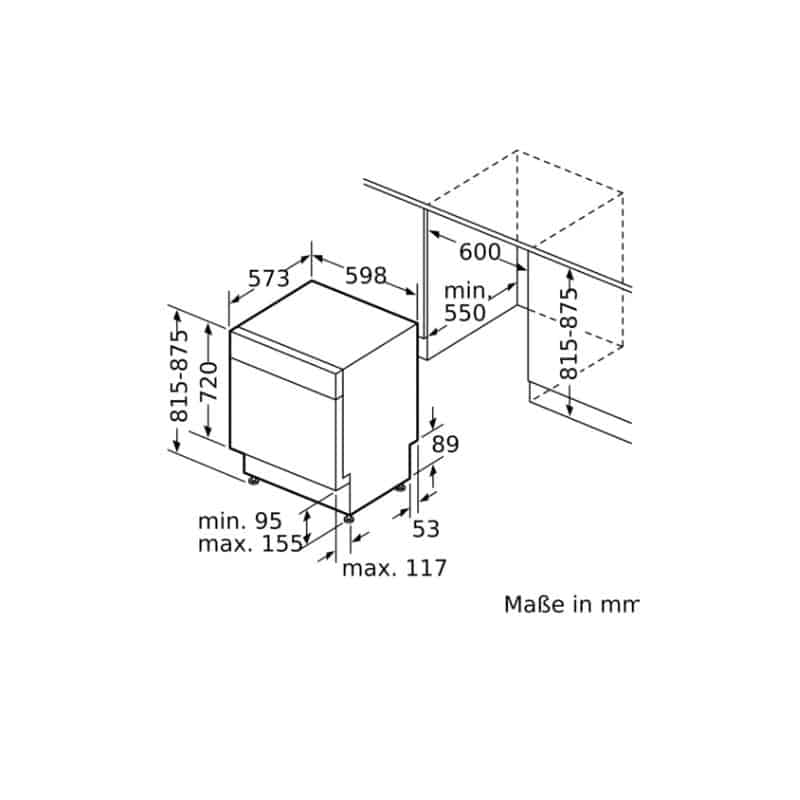 – Kích thước máy rửa bát (Cao x Rộng x Cao): 81,5 cm x 59,8 cm x 57,3 cm