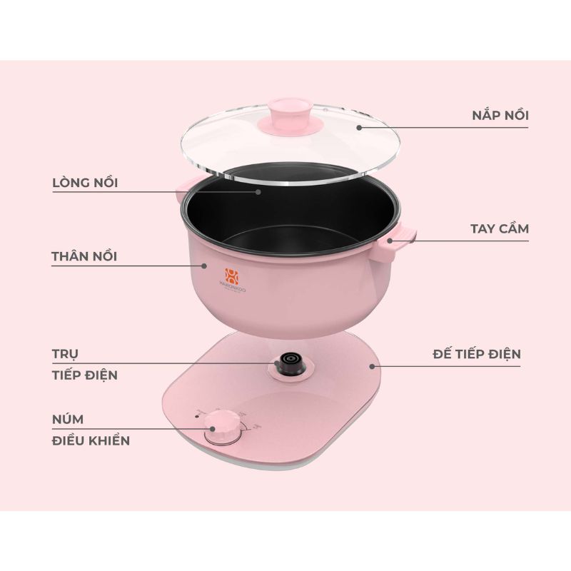 Nồi lẩu điện Hawonkoo HEH-100-PK thuộc bộ sưu tập Girl Pink của Hawonkoo nổi bật với màu hồng pastel sang trọng. Sản phẩm là sự kết hợp hoàn hảo giữa thời trang và công nghệ, đồng thời sở hữu mức giá cạnh tranh phù hợp cho mọi gia đình, giúp không gian nhà bếp trở nên thẩm mỹ và hiện đại hơn.